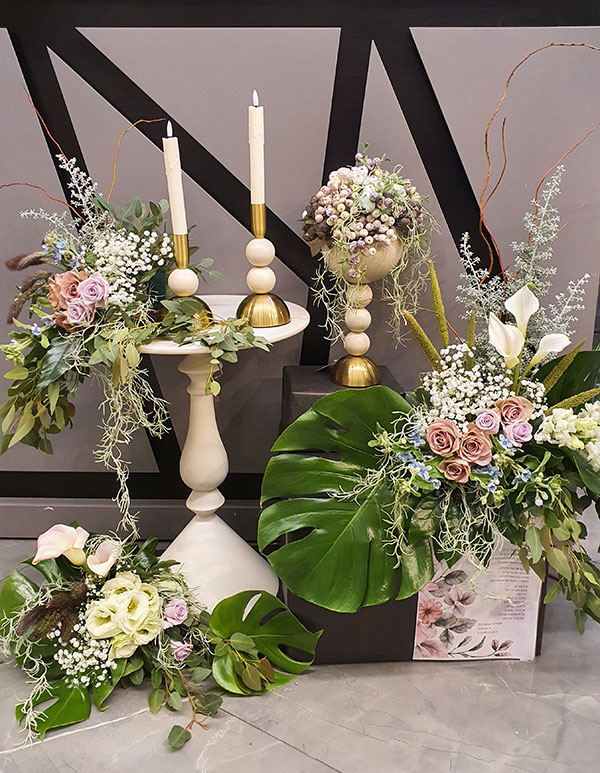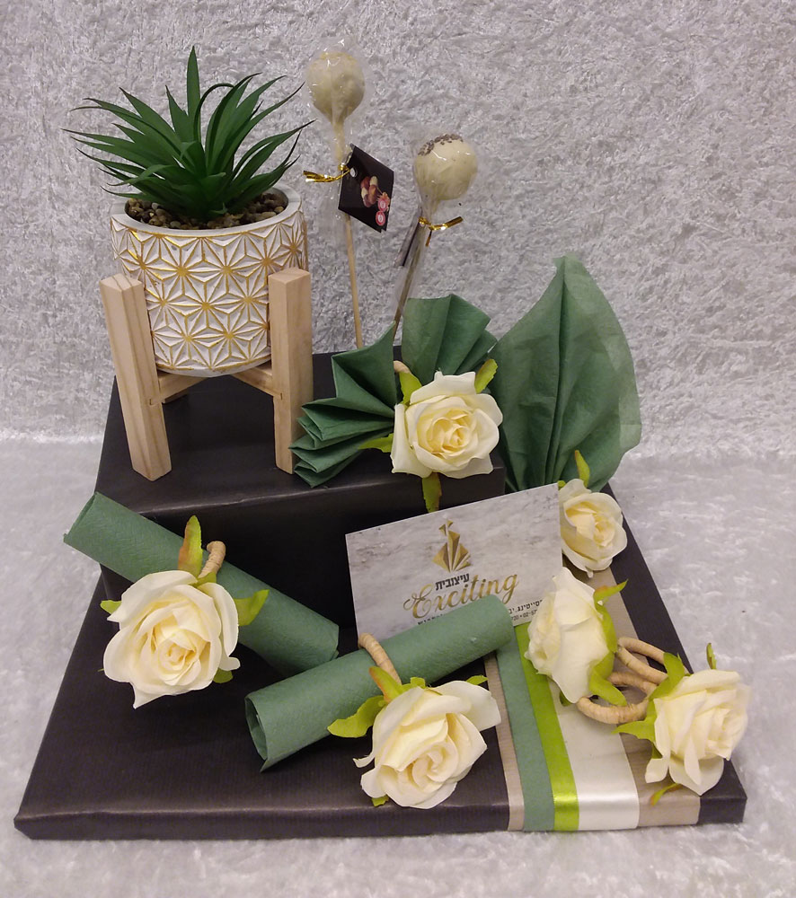 וכמובן בשילוב שזירה אומנותית של פרחים חיים הנותנות את האווירה ומשלימות את היצירה