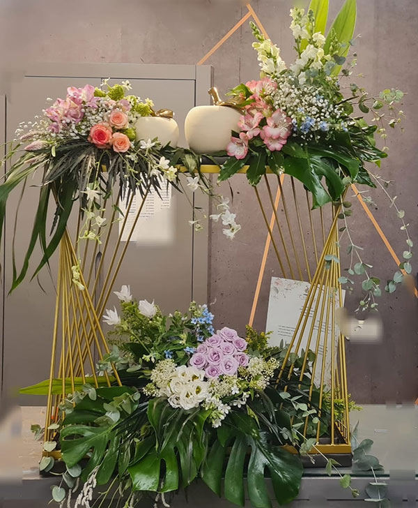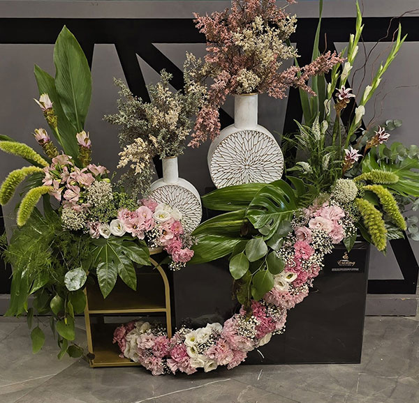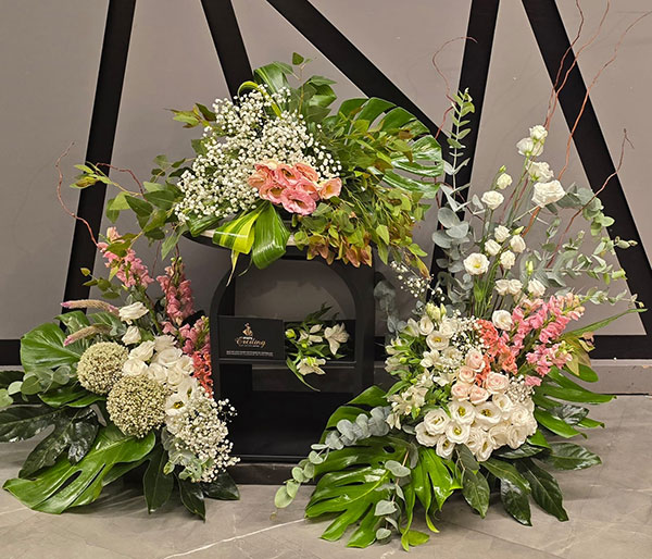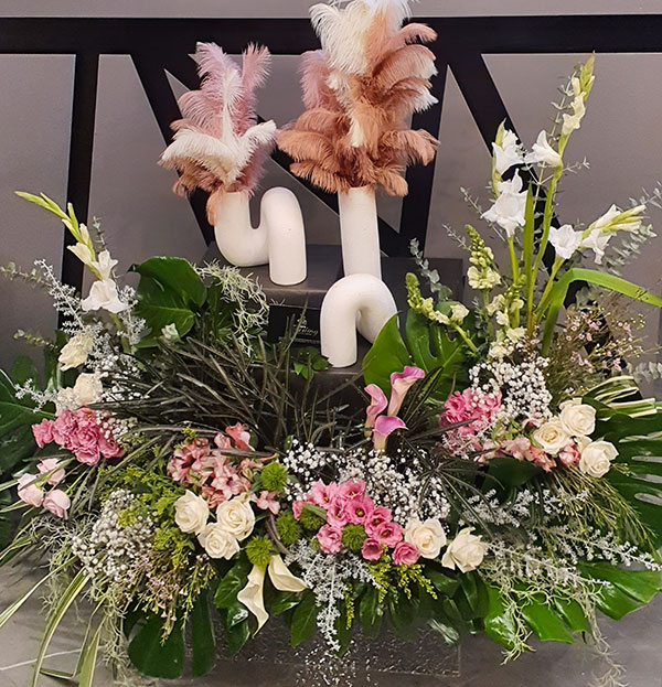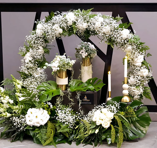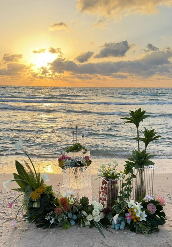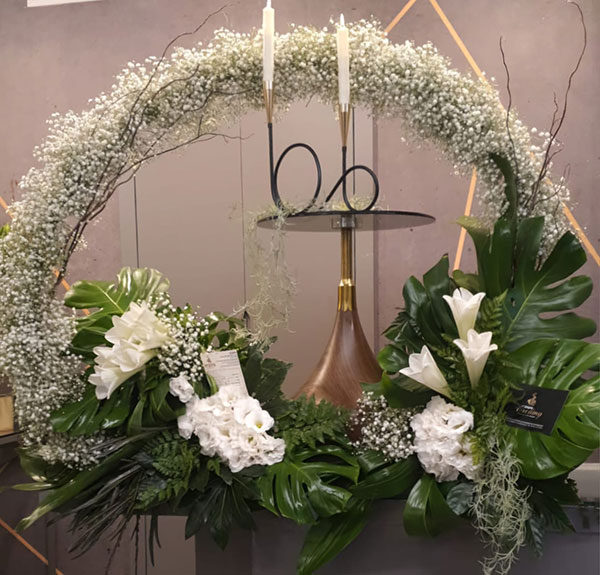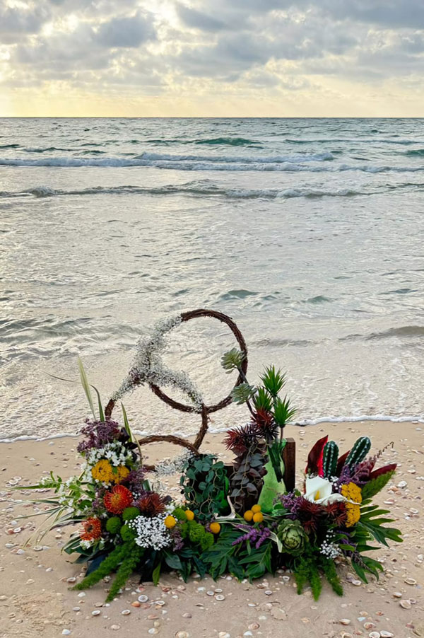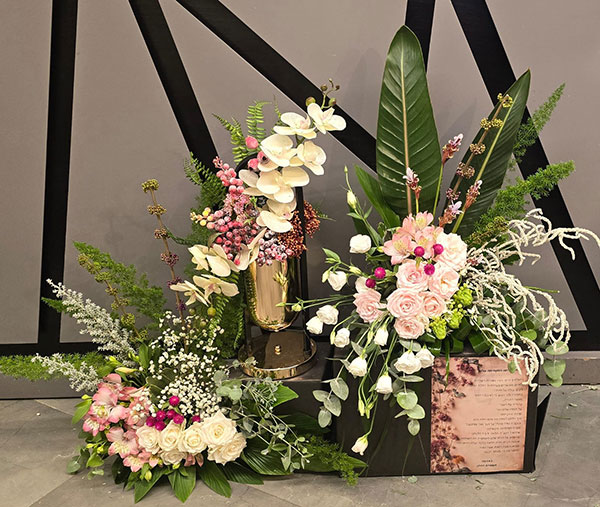 וכמובן בשילוב שזירה אומנותית של פרחים חיים הנותנות את האווירה ומשלימות את היצירה