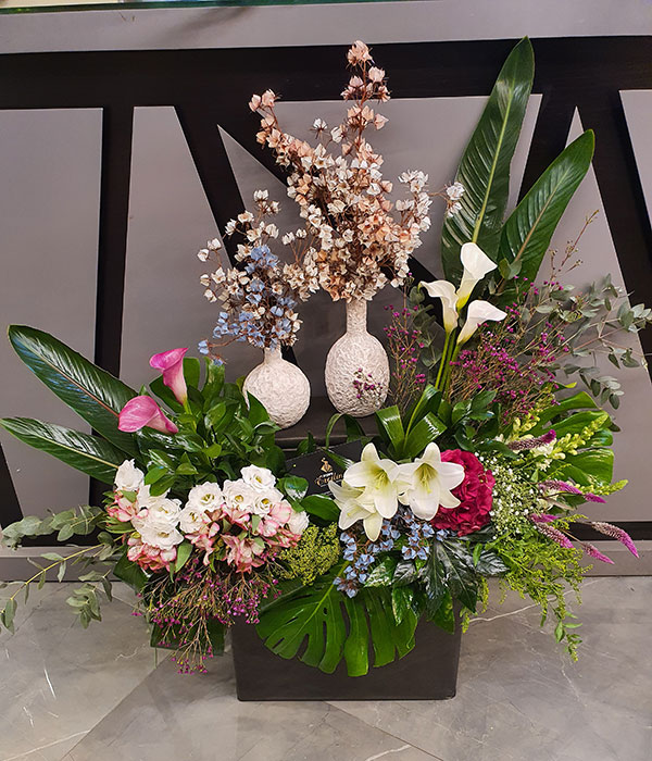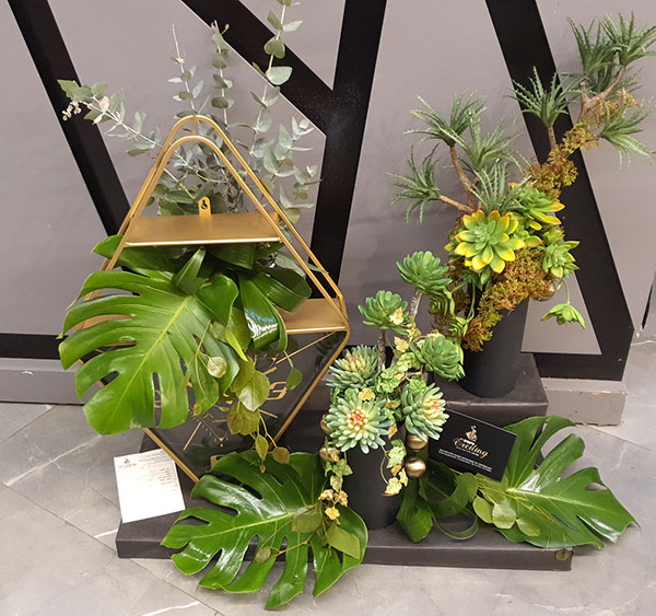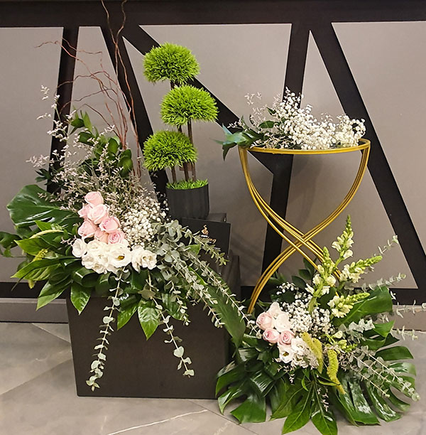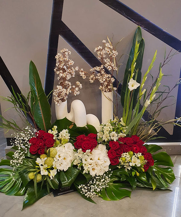 קיימת אפשרות של שילוב הזר יד העשויה מפרחים מלאכותיים ביצור עיצובית אקסייטינג בעיצוב של הפמוטות שישדרג לכם את העיצוב בקו אלגנטי ויוקרתי.