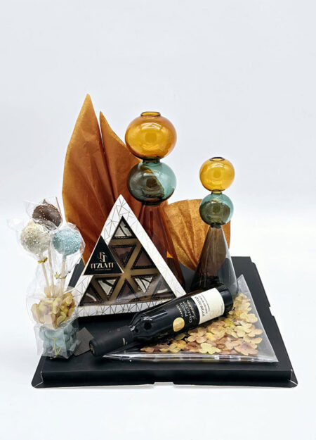 בשילוב בקבוק יין מארז פרלינים ו3 מקלות פרלין