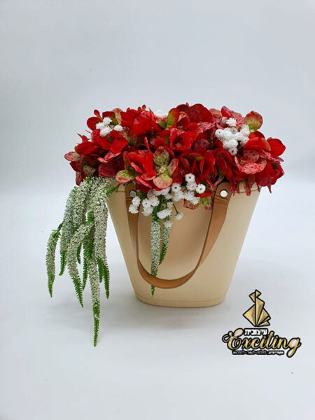 אגרטל תיק גדול בשזירה פרחים מלאכותיים