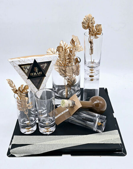 סט שישיית כוסות דגם צילינדר עלי זהב