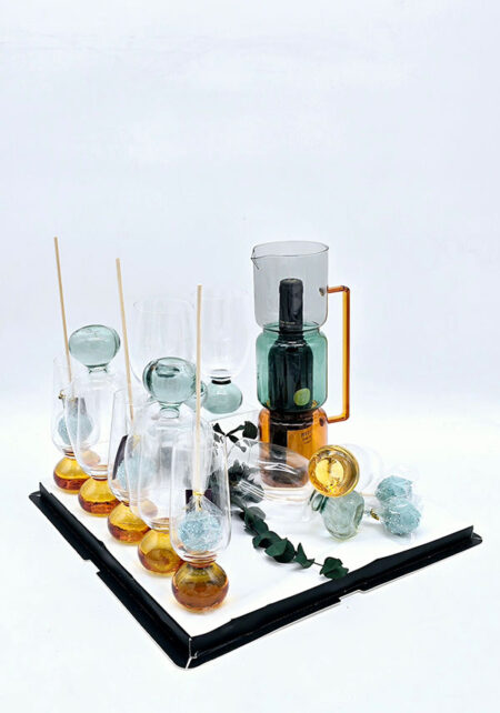 סט 2 אגרטלים ו6 כוסות שתיה וקוקטייל דגם תאילנדי