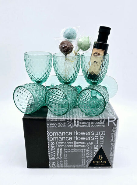 שישיית כוסות דגם ריבועים ירוק