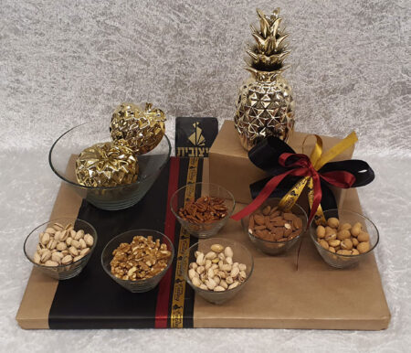 סט 6 קעריות זכוכית וקערית אחת גדולה בשילוב תפוחים קרמיקה זהב