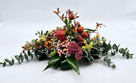 ספוג פרחים חיים מאורך בשילוב רימונים