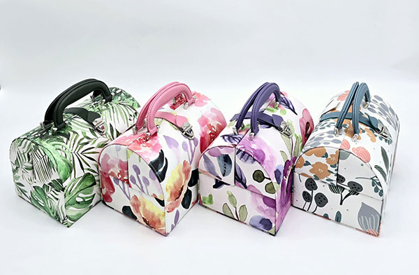 קופסת תכשיטים דגם תיק פרחים ירוק