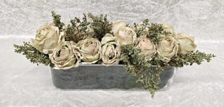 אדנית זכוכית בשילוב ורדים מלאכותיים במגוון צבעים